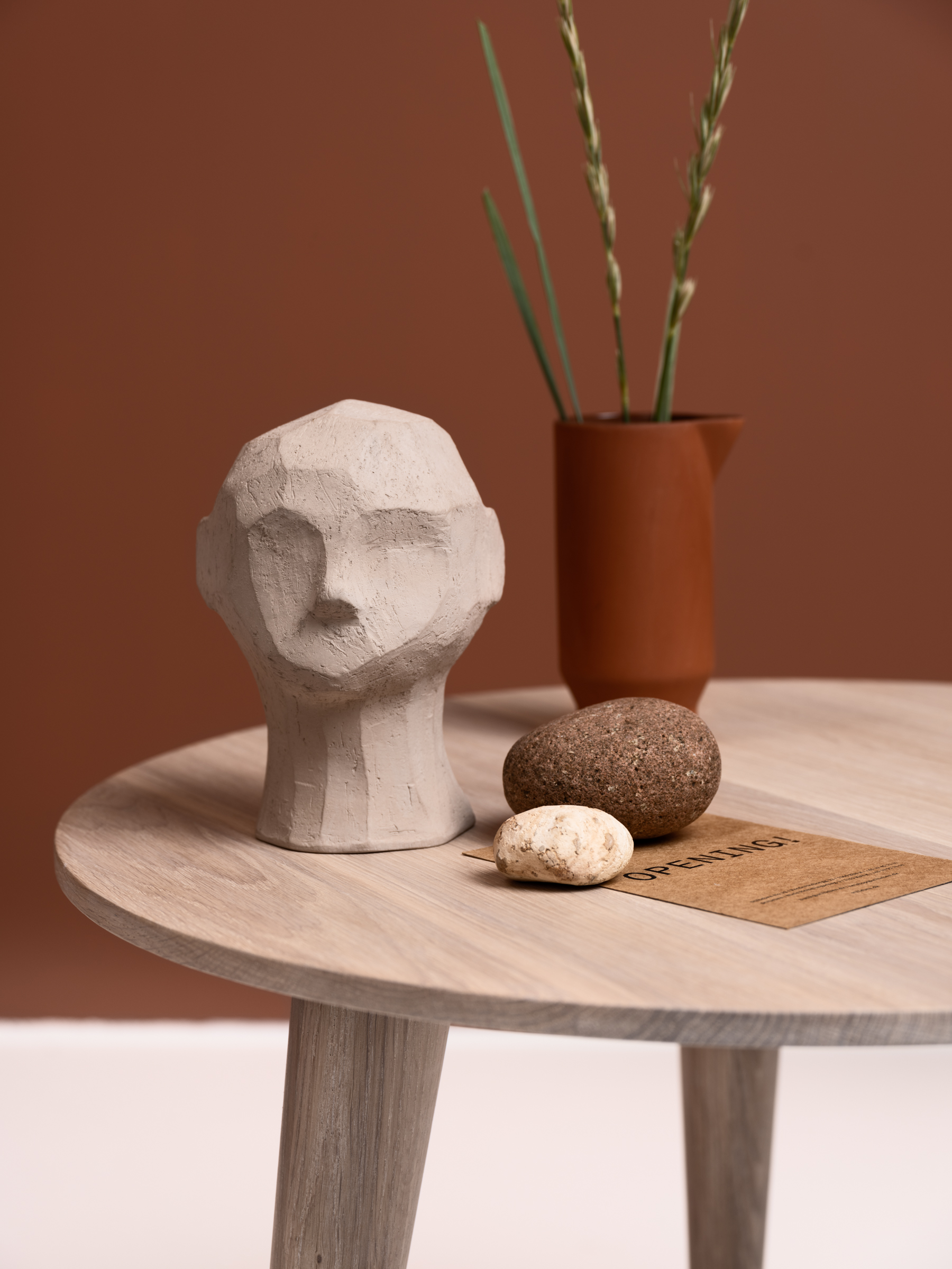 Alle bord er i heltre eik og kan bestilles i fem utførelser: oljet, hvitoljet, gråoljet, smoked oljet eller sort mattlakk. Lounge og Move har understell i sort stål.