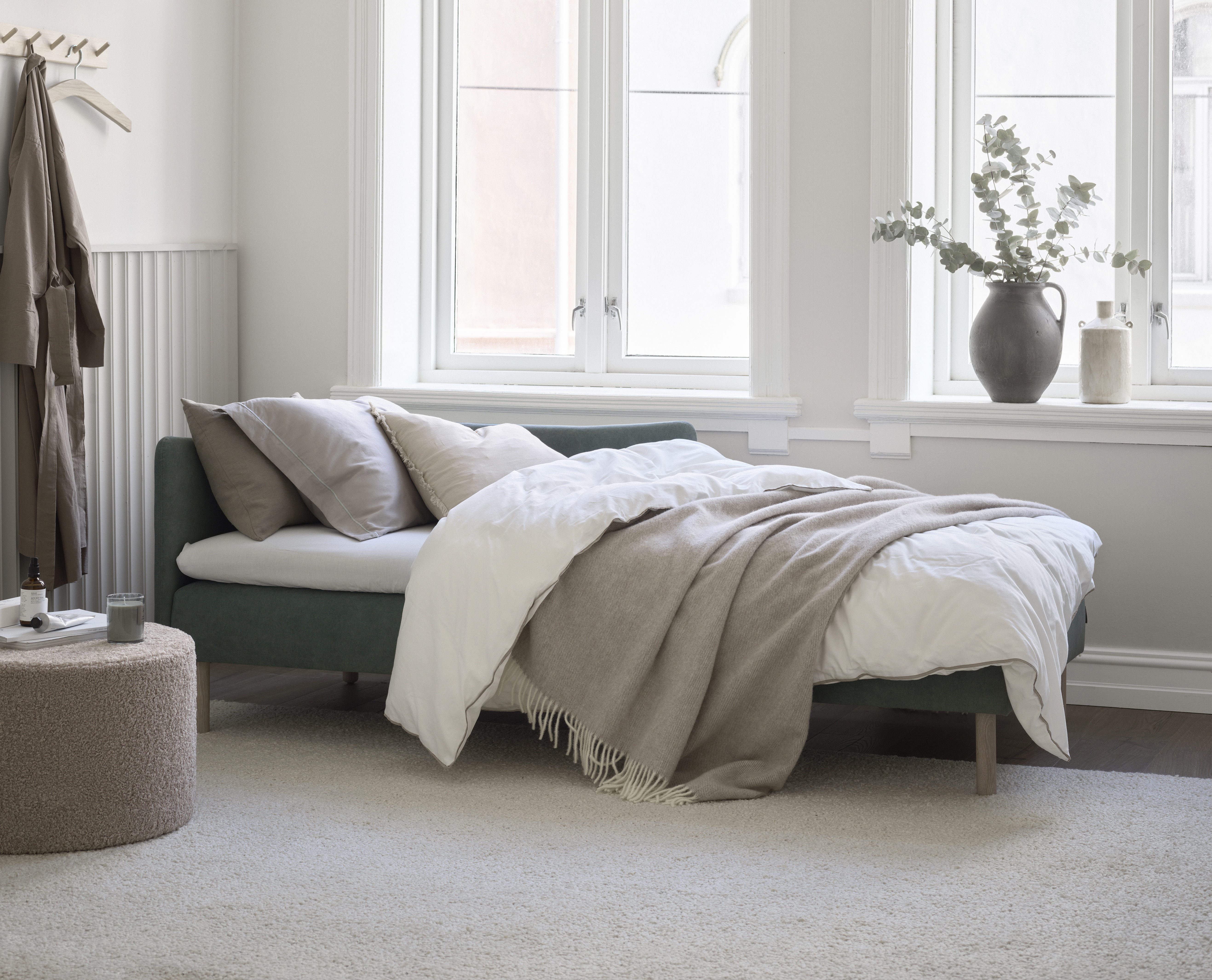 Idyll har sin egen tekstilkolleksjon og alle valg har samme pris. Det betyr at du kan velge akkurat hva du ønsker og prisen blir den samme. Tekstilene er vaskbare på 30grader og alle sete- og putetrekk er avtagbare.